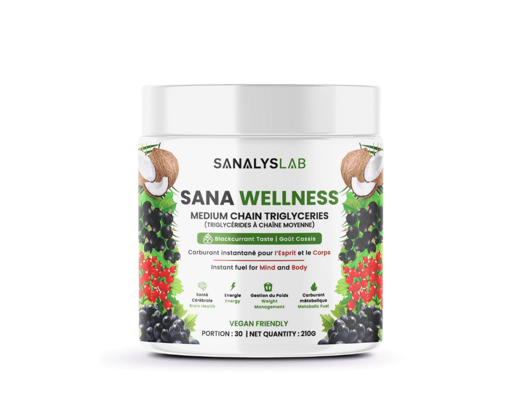 Het MCT-oliepoeder in SanaWellness speelt een cruciale rol bij het stimuleren van de stofwisseling en het bevorderen van gewichtsverlies. MCT’s (Medium Chain Triglyceriden) worden snel opgenomen en omgezet in energie, waardoor vet efficiënter wordt verbrand. Door thermogenese te verhogen en een langdurig verzadigingsgevoel te bevorderen, helpt SanaWellness je om voedselcravings onder controle te houden en een gezond gewicht te behouden*.